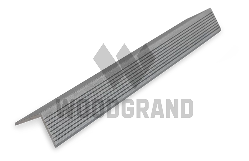 Монтаж уголка из ДПК производится с использованием саморезов, которые крепятся непосредственно к террасной доске или ступени. С помощью этого уголка вы сможете закрыть пространство между стеной и настилом, а также обработать торец террасной доски.